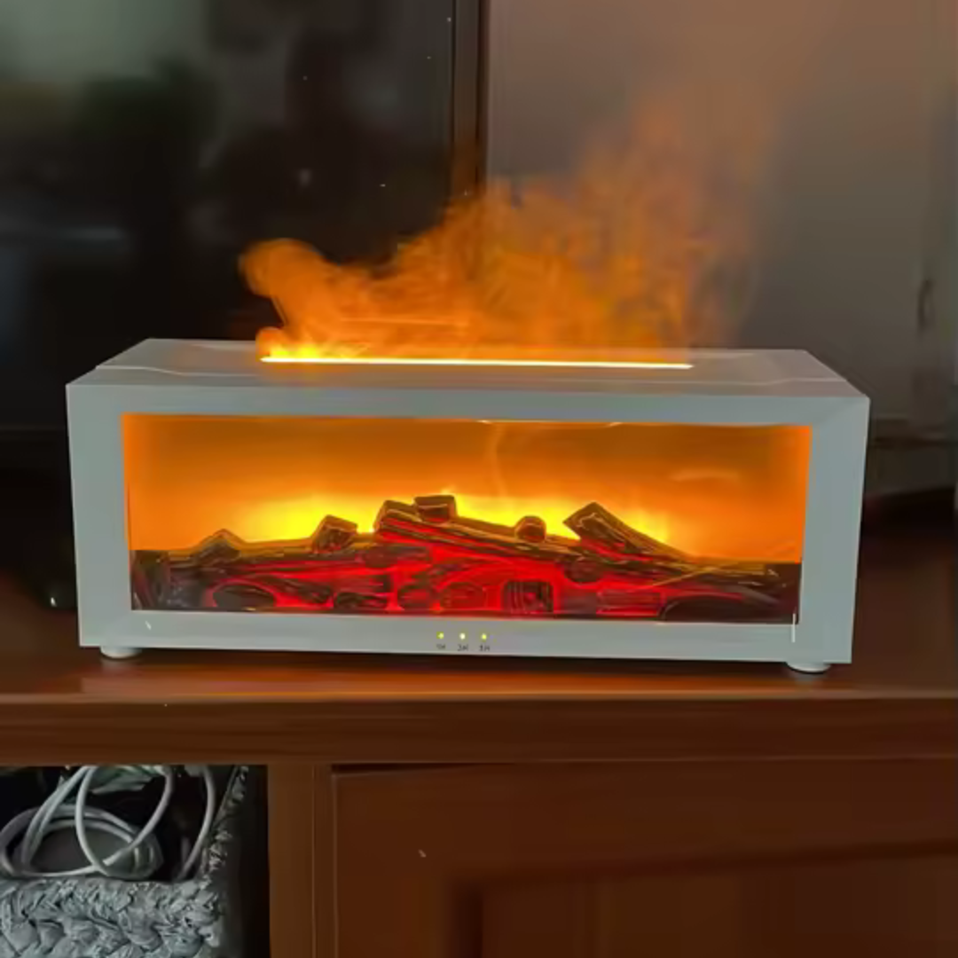 Ciepły blask płomienia uspokaja zmysły, a delikatna mgiełka sprawia, że powietrze staje się miękkie jak po letnim deszczu.